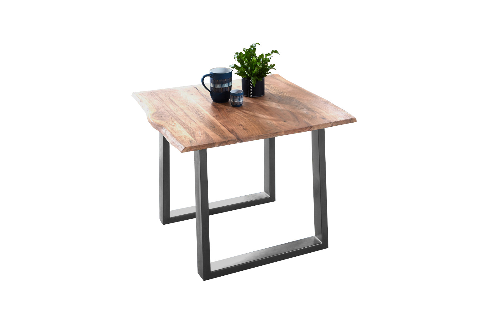 Esszimmertisch Noah, Baumkantentisch 90 x 90 cm, Massivholz Akazie / Naturfarben, Gestell Silber